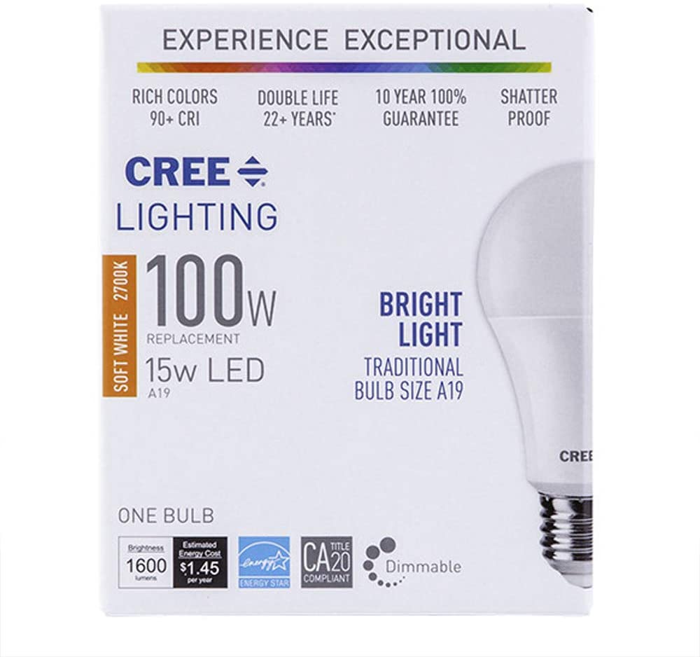 Cree Lighting A19 100w Equivalent Led Bulb 1600 Lumens Dimmable Soft White 2700k 25 000 Hour Rated Life 90 Cri 1 Pack Walmart Com