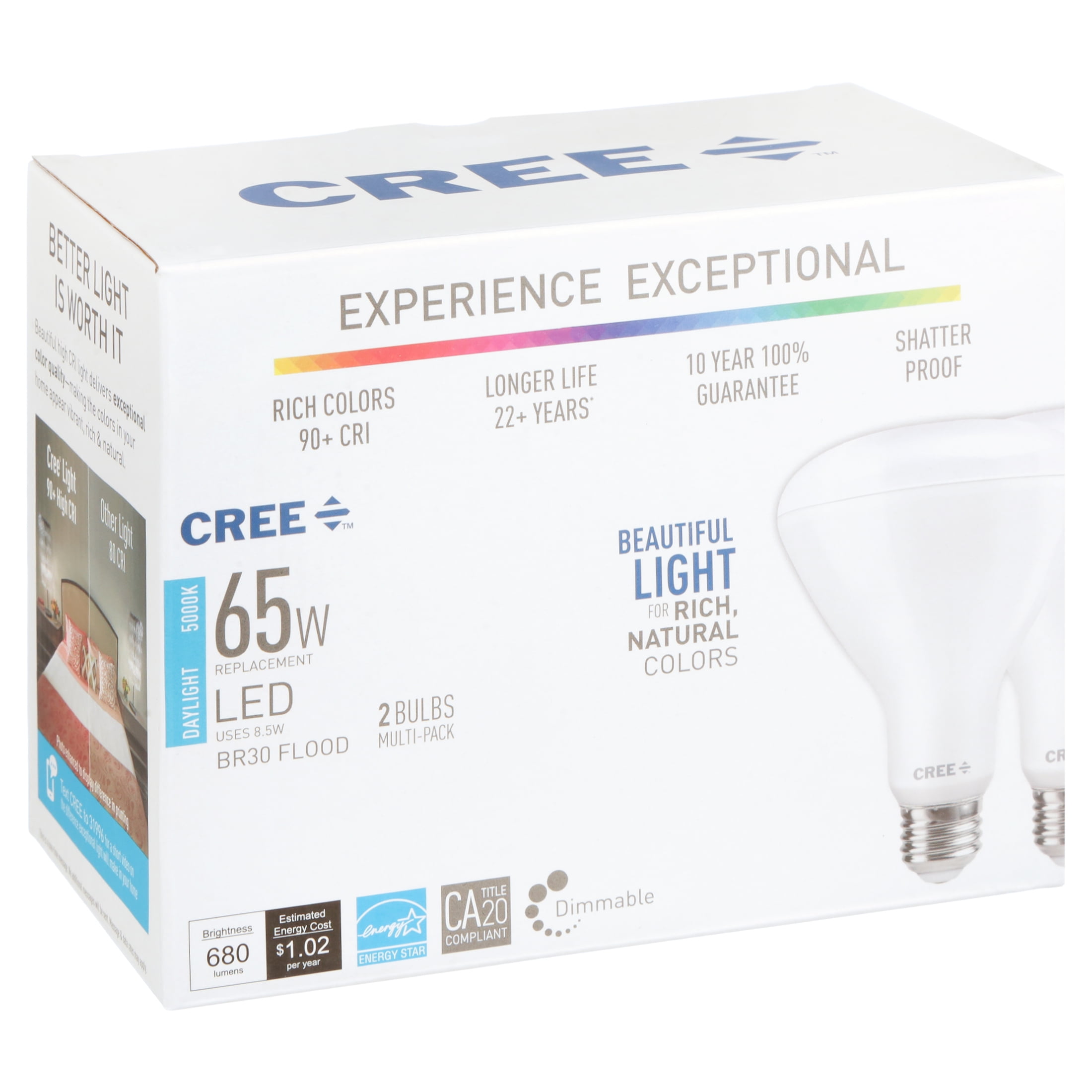 Cree Lighting Br30 Indoor Flood 65w Equivalent Led Bulb 655 Lumens Dimmable Daylight 5000k 25 000 Hour Rated Life 90 Cri 2 Pack Walmart Com